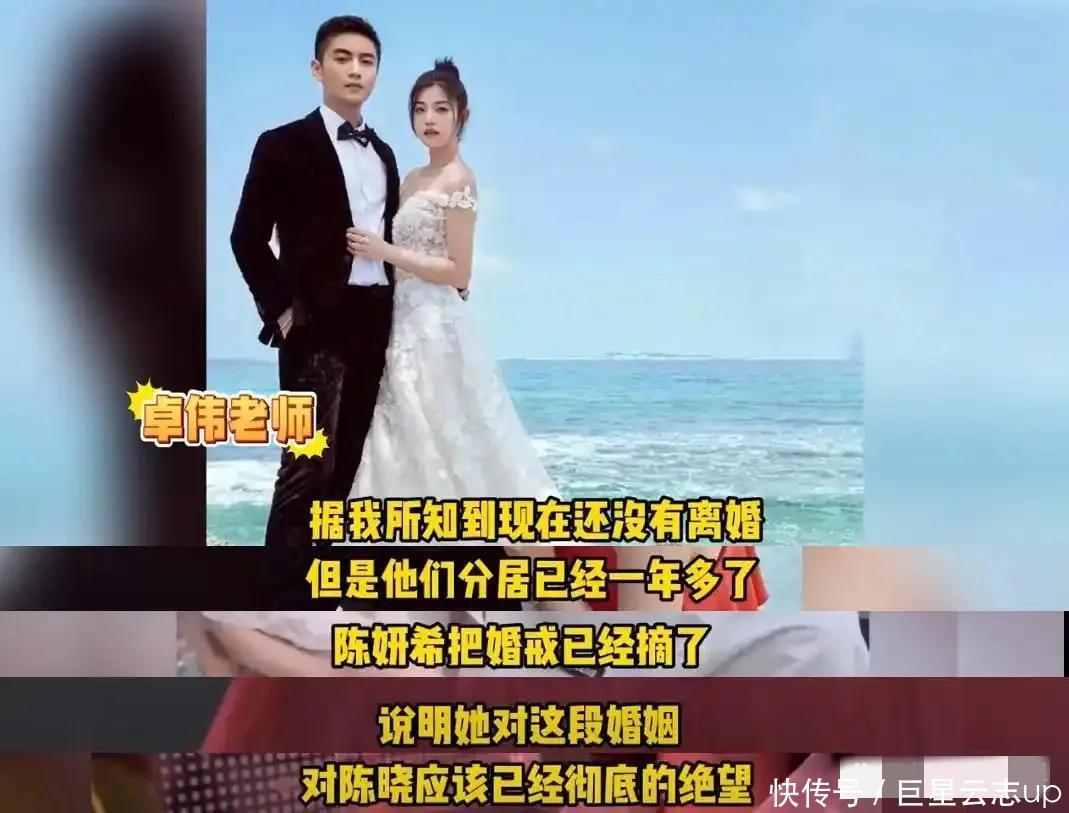 有媒体拍到陈晓和陈妍希已摘下了婚戒,就在去年陈妍希父亲去世时,做为女婿的陈晓却并没有发文悼念也没有去台湾出席葬礼,而是依旧在剧组拍戏。