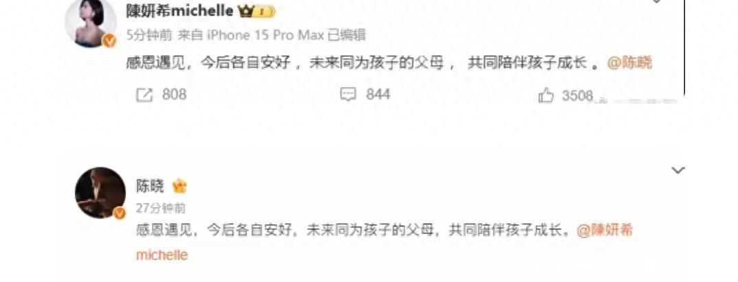并曝出陈晓已在2023年就已向陈妍希提出了离婚,被传陈妍希曾想试图挽回婚姻。